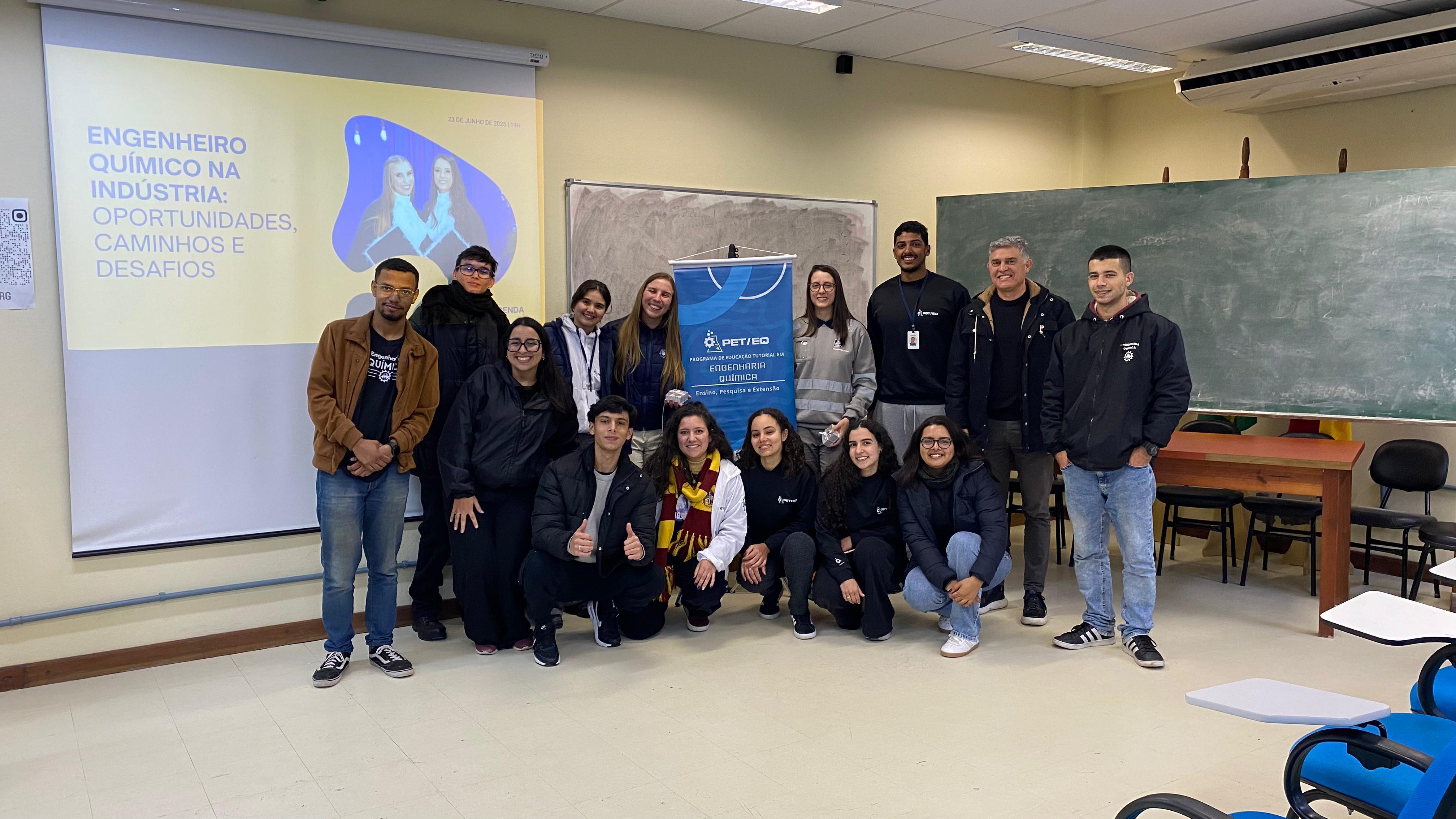 No dia 23 de junho de 2025, o PET Engenharia Química promoveu a palestra “Perspectivas e Desafios da Engenharia Química na Indústria”, ministrada pelas engenheiras químicas Betina Minetto Lazzarotto e Brenda Gasparetto Branchi, ambas egressas da FURG e com trajetória marcada por liderança estudantil e atuação profissional de destaque no setor industrial. A atividade apresentou uma visão ampla e atual sobre o papel do engenheiro químico na indústria, abordando oportunidades de carreira, áreas de atuação, desafios técnicos e comportamentais, além de tendências que moldam o futuro da profissão. As palestrantes compartilharam experiências reais do ambiente corporativo, discutiram suas trajetórias e refletiram sobre como a formação recebida na FURG contribuiu para seus caminhos profissionais.